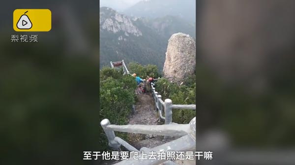 实拍浙江乐清一男子爬悬崖拍照坠亡现场视频