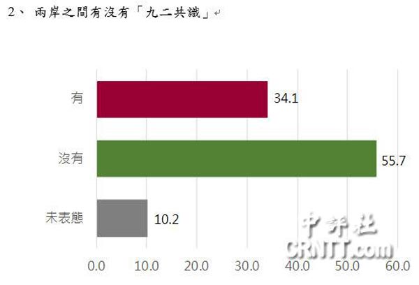 55.7%民众认为两岸之间没有九二共识。(照片:两岸政策协会提供)