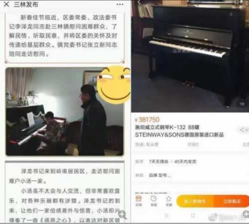 一条“上海浦东新区政府官员慰问困难户家庭”的消息,近日被指“翻车”。本报此前报道,网友发帖称,消息中配发的图片里,其中一家困难户“小汤”弹奏时用的钢琴,疑为德国原装进口的某品牌价值38万余元的钢琴。此外,还有网友指出其他困难户家中疑似出现水晶吊灯、双开门冰箱和红木家具。消息曝光后,“困难户是否真的贫困”引发争议。
