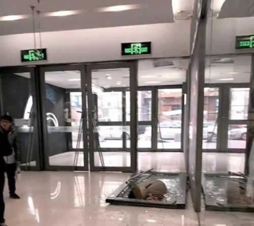 一扇厚重的大玻璃门突然倒塌,当场将一名女子砸在下面。被砸的女子头部受伤,想要站起来却没有做到,再次倒在一片碎玻璃中。事发后,有人迅速报警求助,辖区警方和120急救人员迅速赶来救援。随即受伤女子被紧急送往医院抢救,医院初步诊断,该女子受了严重的脑外伤。