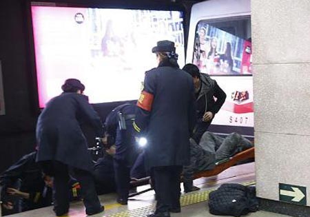 3月14日9点40分北京地铁一号线万寿路站发生乘客坠轨自杀 中国青年网记者 张炎良 摄