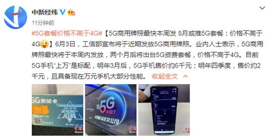 原标题:5G商用牌照最快本周发 8月或推5G套餐:价格不高于4G