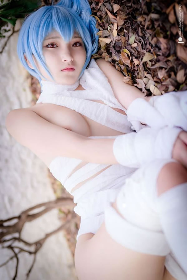 白纱条缠身的蓝银灰头发女孩无圣光写真