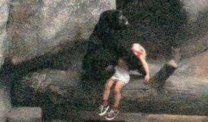 在美国伊利诺州的一座动物园内,很多家长带著孩子来猩猩园区观赏猩猩。一个3岁左右的小男孩贪玩攀上栅栏,却不小心跌了进去。这个猩猩园区有18尺高,里面有很多猩猩。它们发现有人入侵自己的领地,立刻上前查看。这就是Binti Jue。