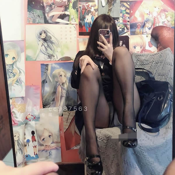 极品萝莉网红九尾狐狸m黑色内衣过膝袜紫