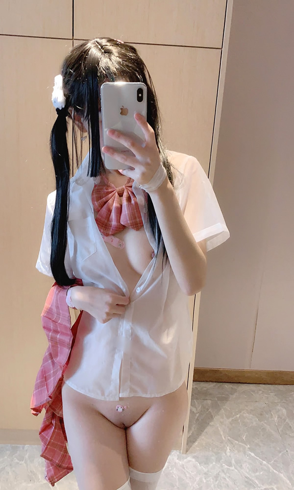 软妹子H工口赛高酱私定无圣光粉白色透明制服