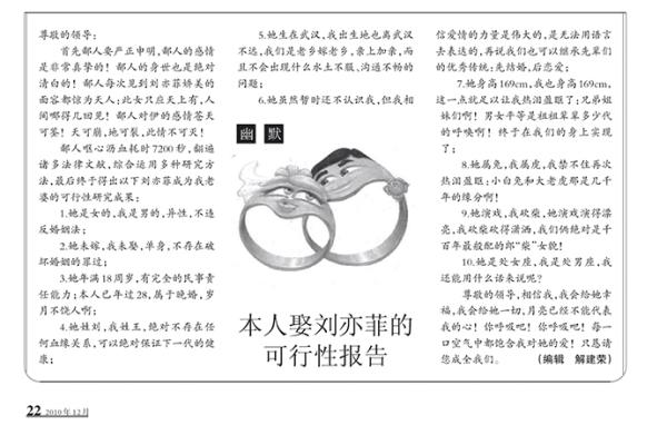 《政府法制》期刊上刊登的《本人娶刘亦菲的可行性报告》