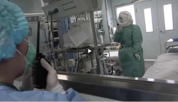 2020年1月21日,央视记者探访武汉金银潭医院重症监护隔离病房。在患者治疗区,医务人员坐在病人床边,做各种操作及处理,做完后要及时记录。他们所做的电子病历密密麻麻。据了解,医务人员每隔4小时换一班。
