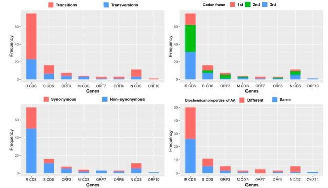 初步分析发现,这93个新冠病毒中有140个位点的变异,其中120个位于基因编码序列中。基于此,他们将这些新冠病毒分成58种单倍型(可以简单的理解为是58个不同的新冠病毒)。