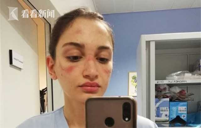 由于疫情告急,医疗系统几近崩溃,不少医护人员疲于奔命。一名美女护士阿莱西近日通过社交媒体贴照,晒出自己长期戴口罩、护目镜被勒出的斑驳红色伤痕,表示很害怕会遭到感染,单次穿了至少6小时的防护服而感到相当疲惫,但仍会继续坚守岗位照顾病患。
