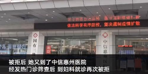 又到中信惠州医院,经发热门诊筛查后到妇科就诊,再次被拒。25日,官方回应称已介入调查。