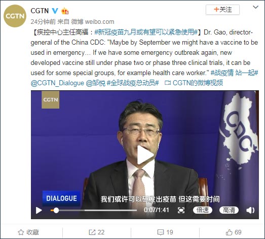 @CGTN 微博截图