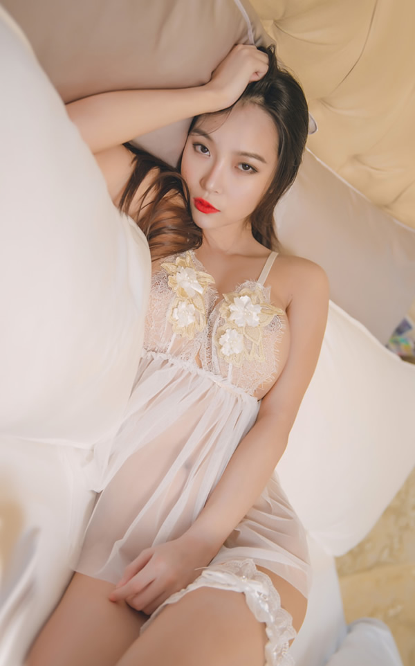 人气嫩模绮里嘉ula黑色透视蕾丝露半球成