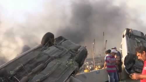 现场显示,一股浓烟从港口区域升起,随后发生巨大的爆炸,爆炸产生的大量火焰和红褐色烟雾形成蘑菇云。冲击波迅速掠过城市,造成严重破坏。约旦地震观测站称,这起事故造成的影响相当于4.5级地震。