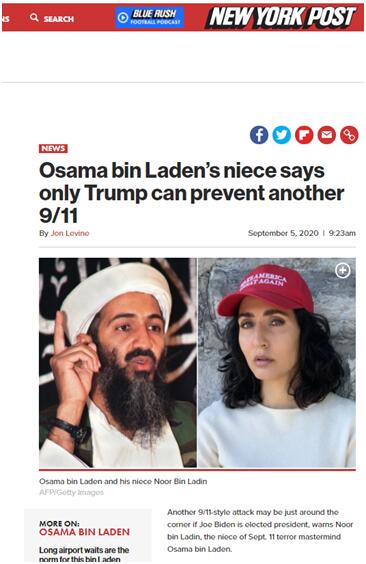 《纽约邮》:奥马·本·拉登的侄女表示,只有特朗普才能阻止另一场“9·11”发生