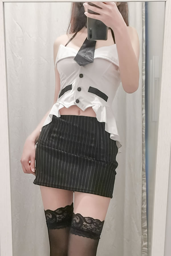 气质女神凯竹侧面开档吊带裙真空无内秀白