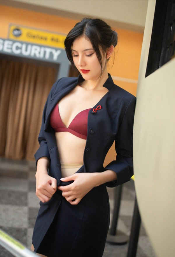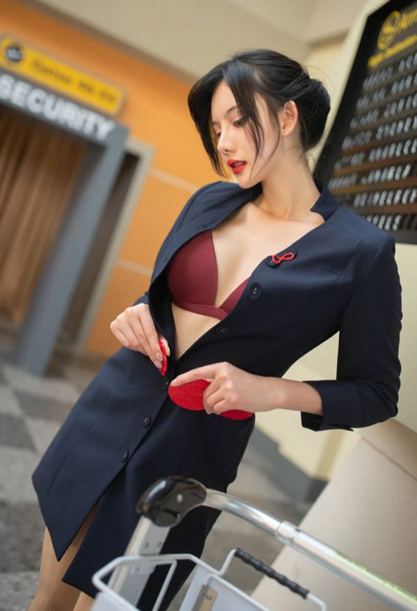 性感阿朱COS地勤小妹丝袜长腿美到极致