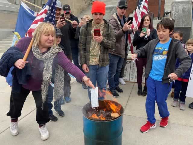 【环球网报道 记者 张晓雅】据美国《国会山报》报道,当地时间6日,超过100人聚集在爱达荷州首府博伊西的议会大厦外举行“烧口罩”活动,以抵制新冠疫情期间当地有关口罩的命令。