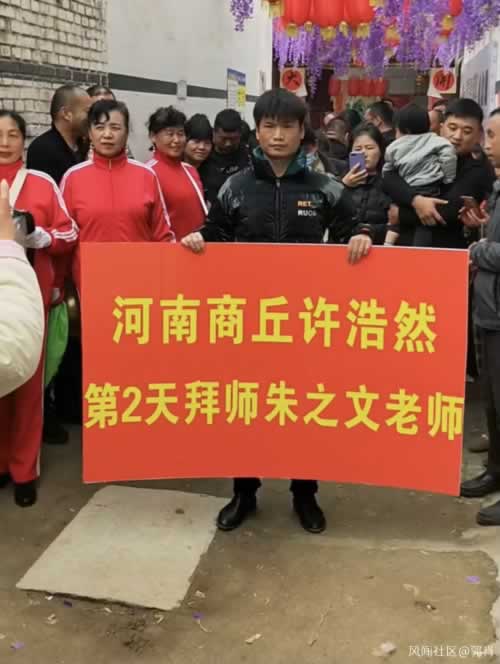 9日,他发了一条视频称,自己下午会直播自己拜师朱之文的画面,在另一条视频中,他还找了几个人一路吹吹打打,来到了朱之文的家门口。
