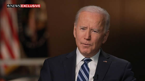 而当ABC主持人询问拜登是否认为普京是一个“杀手”时,拜登则表示“我愿意”。拜登强调,“他将付出的代价,你很快就会看到”。但拜登随后也表示,在某些地方,合作也符合双方利益,“所以我去签了《新削减战略武器条约》”。