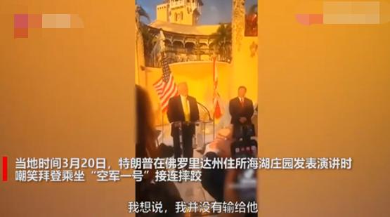 “我并没有输给他!”据“今日俄罗斯”(RT)报道,当地时间3月20日,特朗普在佛罗里达州海湖庄园发表演讲时,嘲笑拜登乘坐“空军一号”时连摔3次。