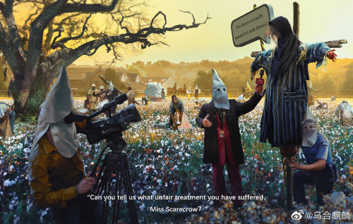 今天(3月27日)上午9时59分,时刻关注国际热点、自称“战狼画手”的中国CG画师@乌合麒麟 ,通过微博发布了最新作品“BCI”——《Blood Cotton Initiative》 (血棉行动,暂译)。