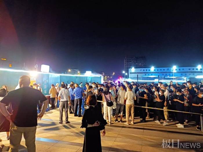在路口的优品道广场,大批人员正在排队等待进行核酸检测。多位排队的市民告诉极目新闻记者,晚上他们接到通知说出现疑似病例,商场所有人员下班后暂时不能离开广场,必须进行核酸检测,广场内有的商户工作人员当时已经回家,也被叫回来进行检测。