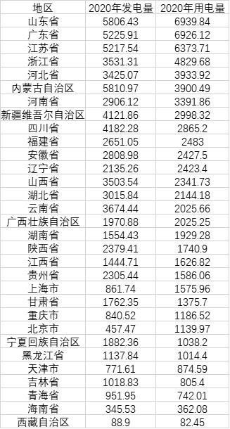 从用电量来看,最大的10个省份分别是山东、广东、江苏、浙江、河北、内蒙古、河南、新疆、四川、福建。