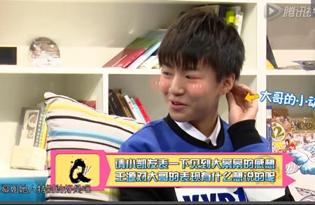 在综艺中王俊凯提到杨幂就脸红,“人很好,也很美”。