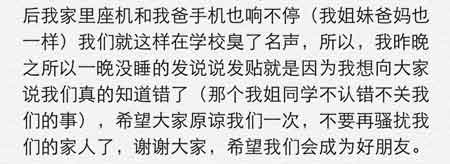 对不起我们真的错了,求大家不要再骚扰我们的家庭。(白衣表妹长微博道歉)