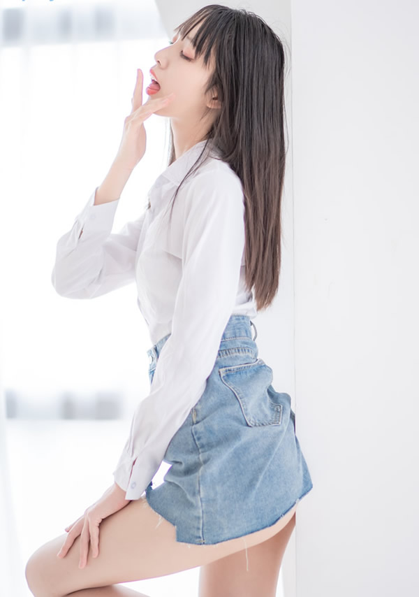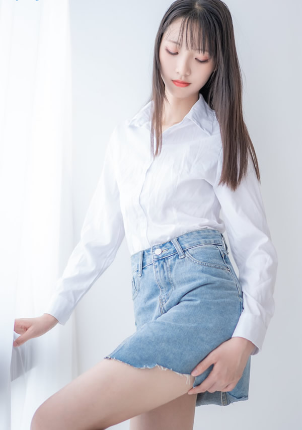 嫩模西瓜少女经典白衬衣牛仔短裙尺度图集