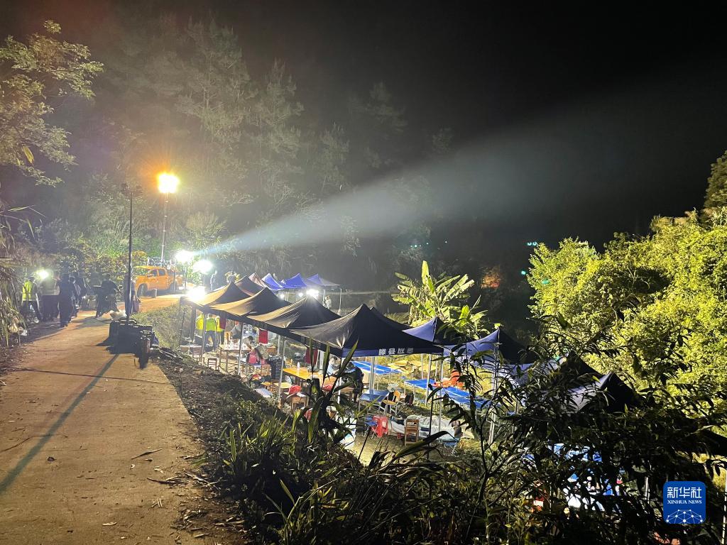 3月22日凌晨,中央广播电视总台记者来到了距离事故核心现场二三十米的地点,在这里可以看到,工作人员已在现场警戒。通过山上的灯光能够看到,搜救人员正在连夜进行搜救工作。