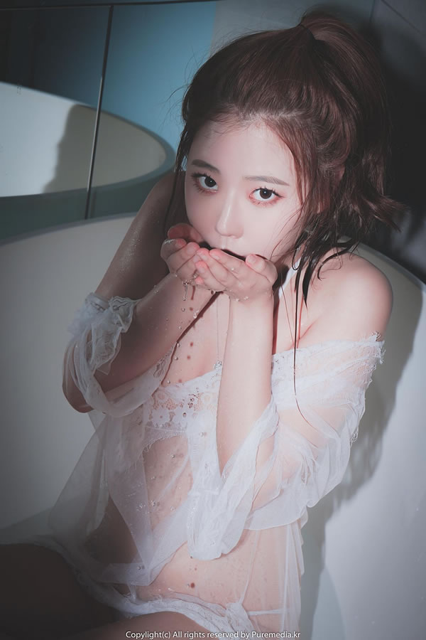 果团网清新嫩模尹意纯粉红+白色蕾丝吊带