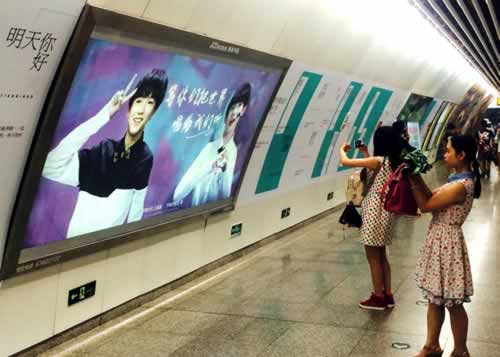 7月8日,重庆轨道交通1号线沙坪坝站站厅,被偶像组合TFBOYS给“承包”了。站厅内的广告灯箱换成了组合成员王源和王俊凯的照片,墙上也贴满了他们唱过的歌曲名。花钱“包”下这个站厅是四名女大学生,花费超10万元。这四个人都是TFBOYS的粉丝,她们希望通过这样的方式,让更多的人认识她们的偶像。重庆晨报 雷键/CFP