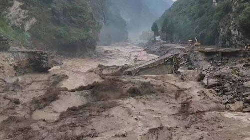 7月12日5时许,受上游邻县短时间强降雨影响,四川省平武县木座藏族乡暴发山洪。