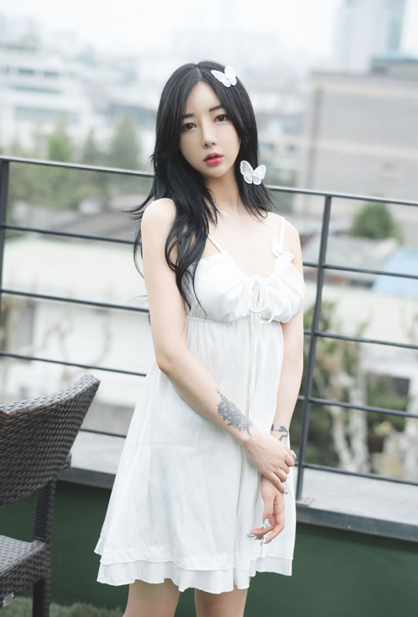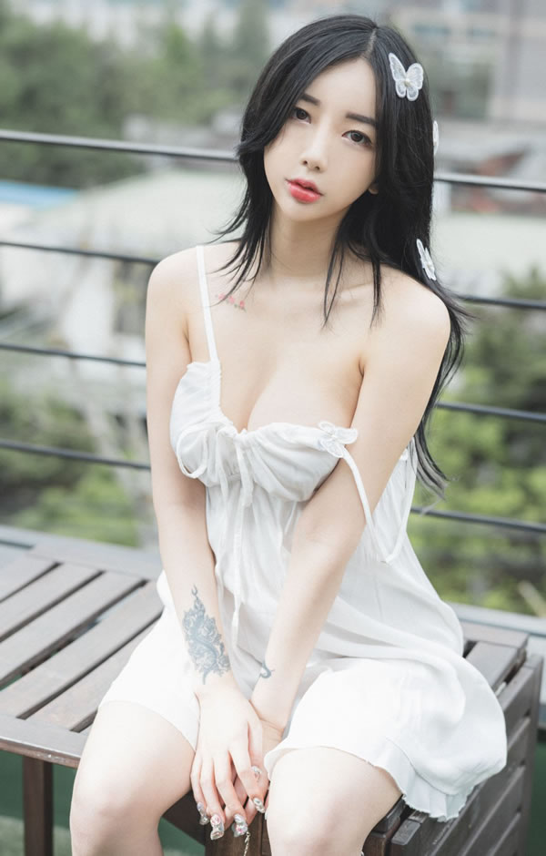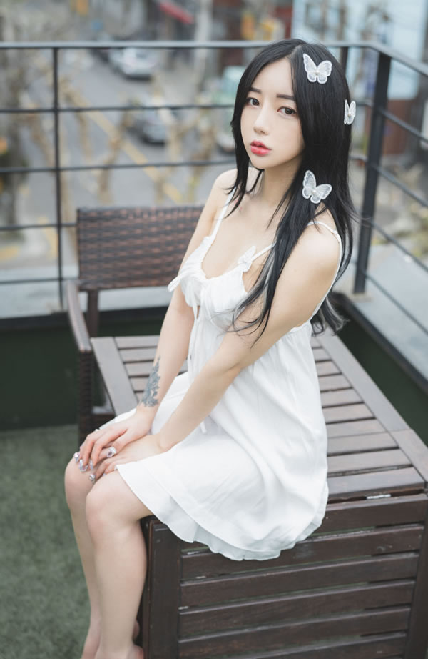 蝴蝶结漂亮小姐姐Jia白色吊带裙尺度写真