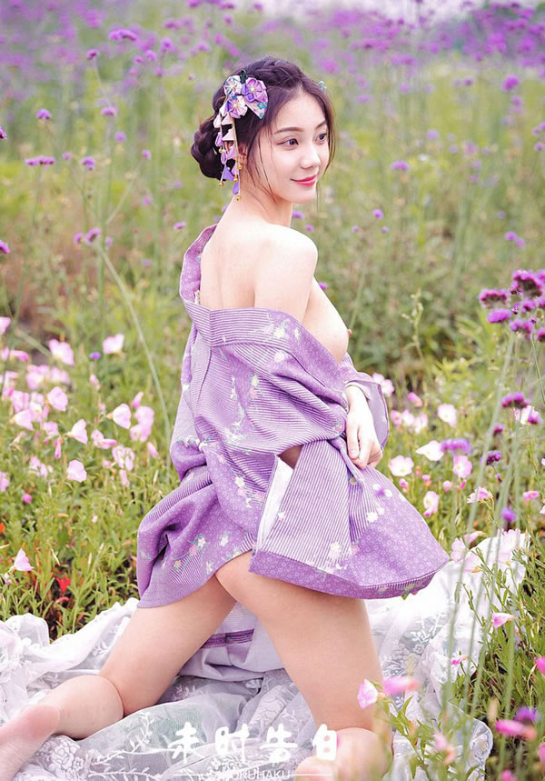 露出系白虎福利姬@瑜宝 紫色开档情趣衣尺