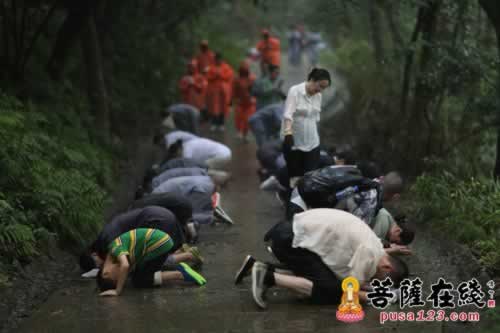 有的人拜到身体轻安,有的人虽然拜得汗流浃背,却是满心欢喜,有的人平时行动不便,却在拜山过程中身轻如燕。心烦意乱的拜着慢慢地心也会清净下来,感觉无比的自在解脱。当一拜一拜的到佛前,感到自己与佛心融会结合在一起的时候,虽然没有成佛悟道,但宗教体验日益增加,就会生无上欢喜心。