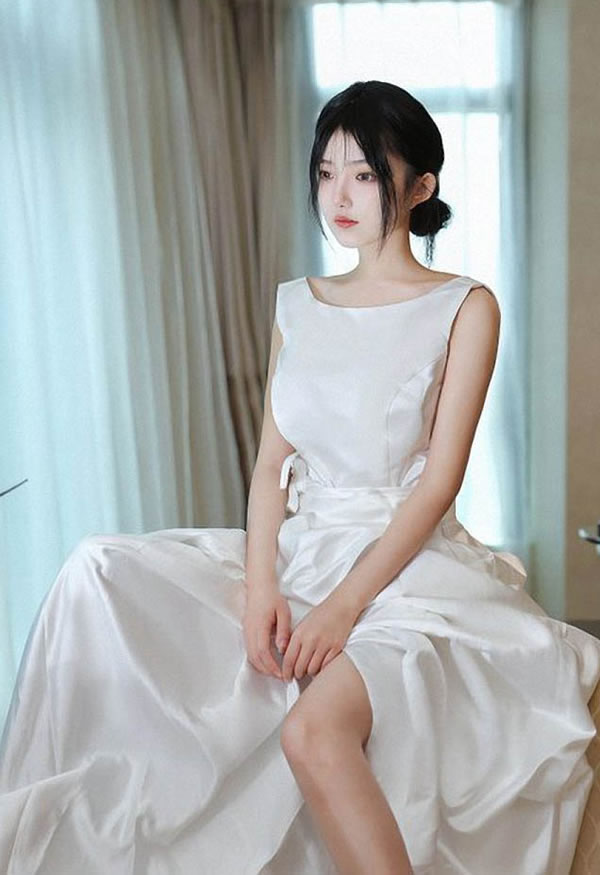 清新美女Leesnoww白色皱褶裙黑内衣居家写