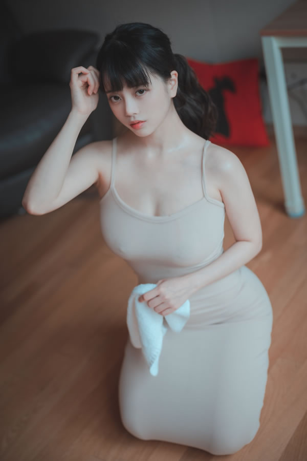 吃货少女希希酱 - 超短旗袍白丝网袜+奶牛