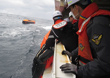 韩国济州海警厅正在事故现场与日本海上保安厅联动救助船员。
