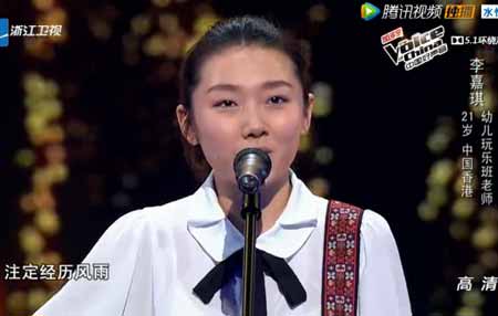 中国好声音第4季第四期热播中!其中来自香港的21岁少女李嘉琪带来的《漫步》,青春阳光充满温暖。现在是属于90后的时代,努力,拼搏,改变与不屈服,只是为了打破世人的偏见,有目的的坚持值得鼓励。青春的嗓音打动了那英和杰伦,那姐更直言“我喜欢你无压力的演唱”,面对那姐的极力争取,青春洋溢的小姑娘李嘉琪会如何选择呢?