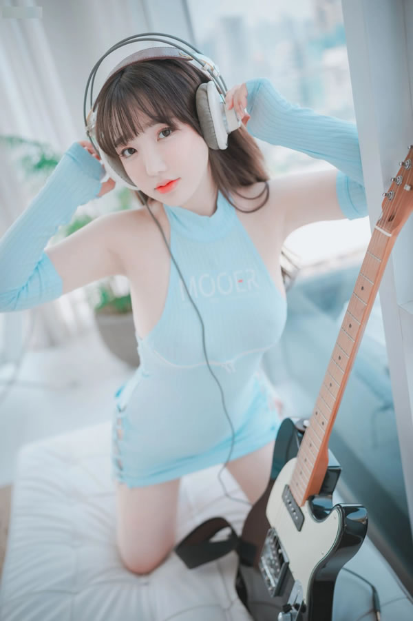 吉它女孩孙乐乐小清新蓝色开胸衣福利写真