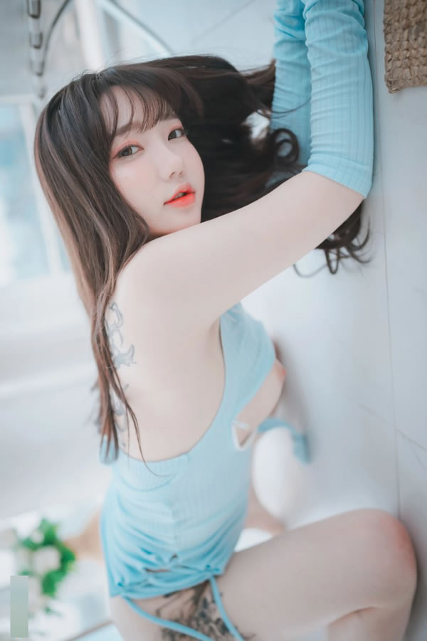 吉它女孩孙乐乐小清新蓝色开胸衣福利写真2